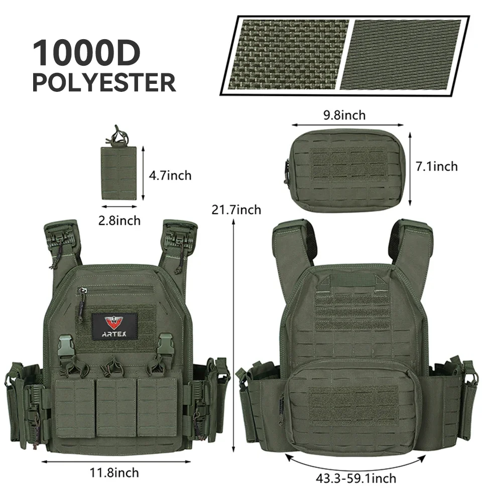 Gilet tactique porte-plaque vert Ranger — MOLLE découpé laser à dégagement rapide