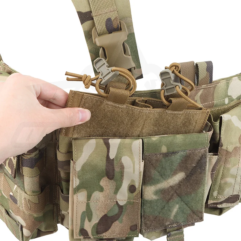 Fabriqué en tissu Oxford / Nylon haute densité, ce chest rig offre une résistance élevée à l’usure et aux frottements, même en usage intensif. Les sangles ajustables assurent un maintien sûr et confortable, tandis que les attaches modulaires permettent de configurer le gilet selon les besoins spécifiques de chaque mission.