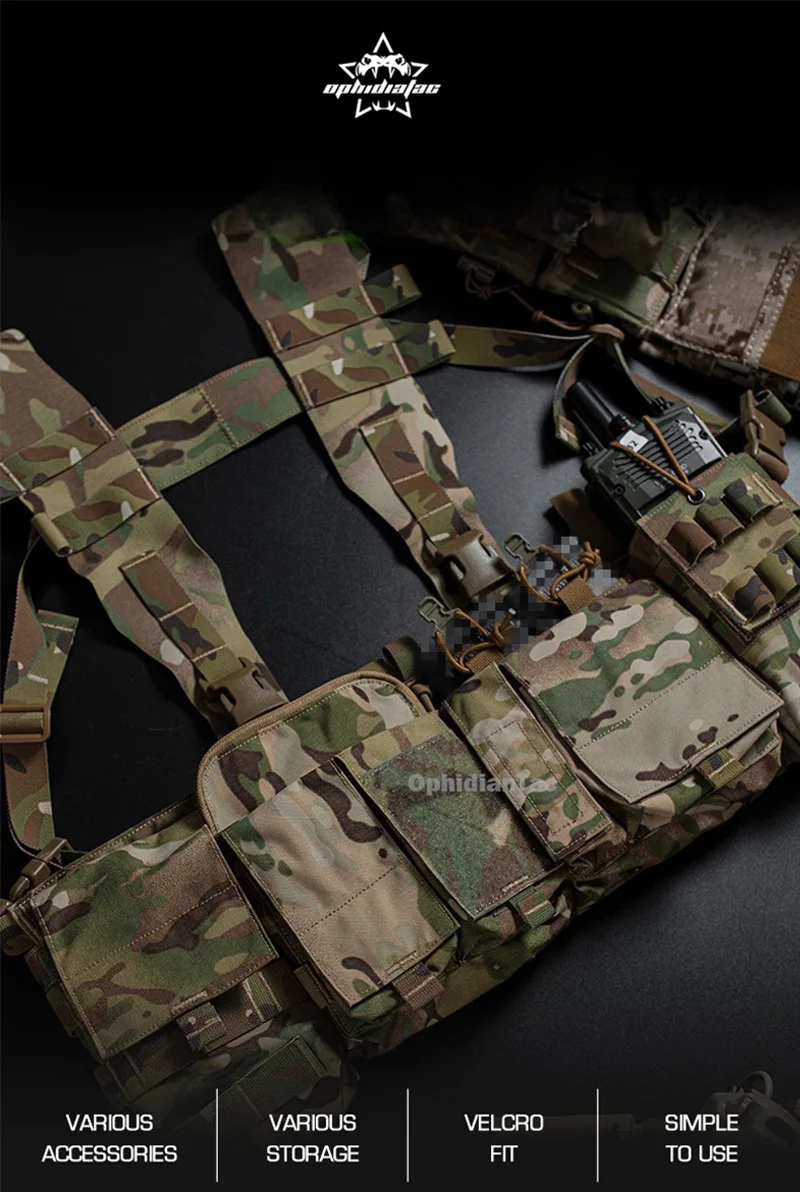 L’OPHIDIAN UW Chest Gear est un ensemble tactique complet de 8 pièces modulaires, conçu pour répondre aux besoins des militaires, policiers, agents de sécurité et passionnés d’airsoft ou de chasse. Compact et fonctionnel, il permet un port ergonomique des équipements essentiels (radios, chargeurs, accessoires divers) tout en restant léger et ajustable.