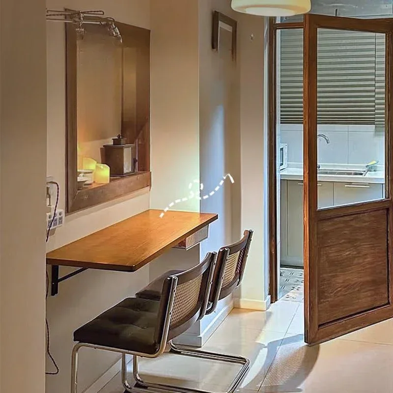 Caractéristiques: Cette table murale est fabriquée en pin, dont la structure est stable et durable. Les tables sont conçues avec des coins arrondis pour éviter les chocs, et les tables peuvent être pliées, ce qui est pratique et durable. Cette table convient à diverses scènes de maison telles que la barre de livre, le café et la maison.