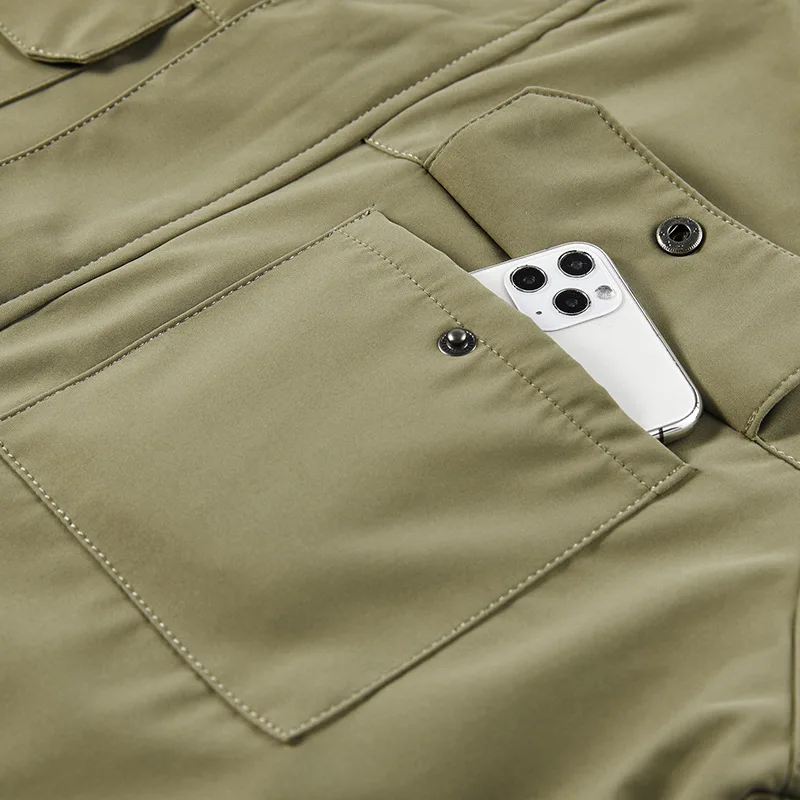 Conception discrète : apparence de veste classique, sans marquages visibles ou éléments militaires présumés.