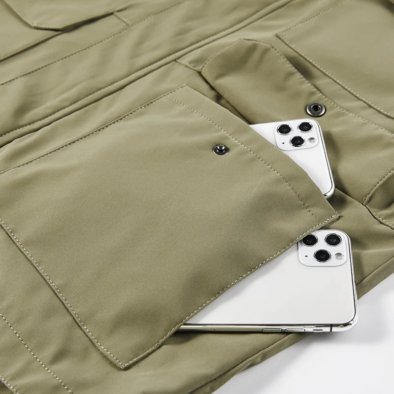 Poches utilitaires sécurisées : poches internes et externes avec fermetures pour transporter radio, documents, matériel discret.